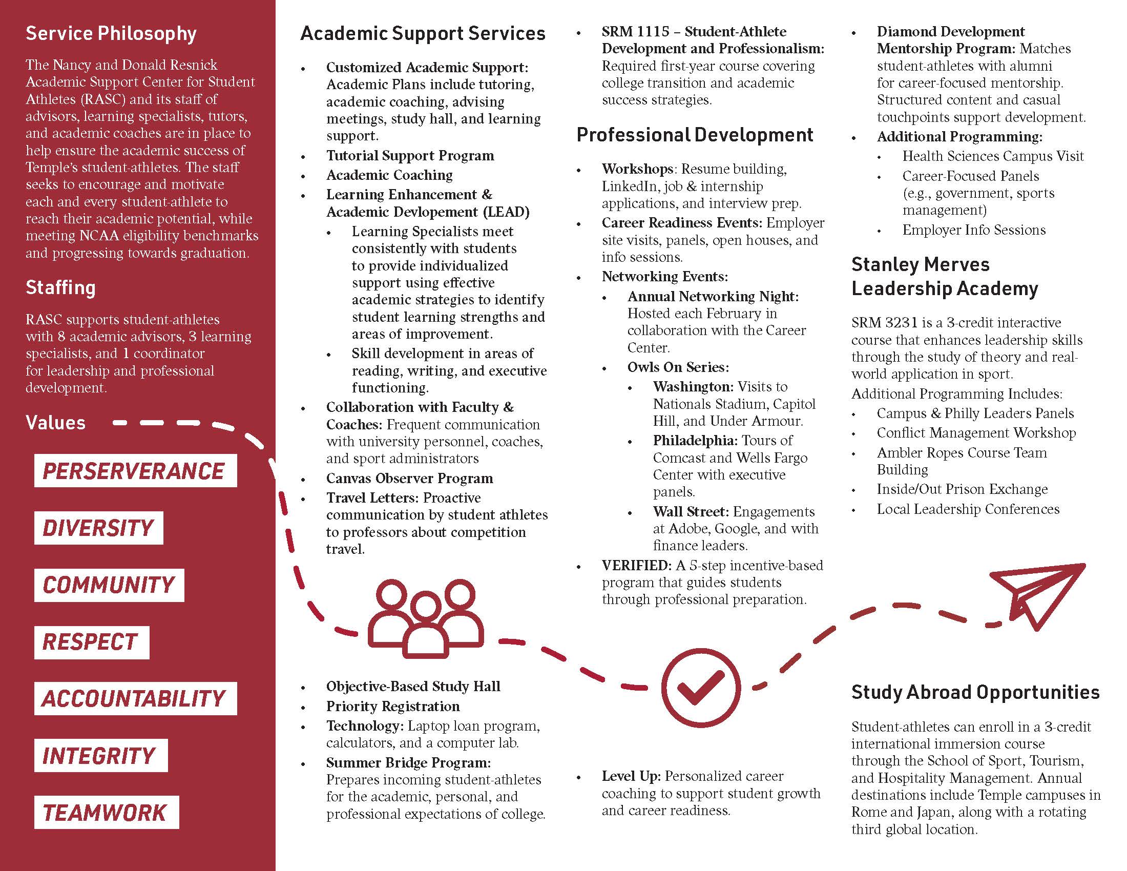 Temple University’s Resnick Academic Support Center is a resource within Temple Athletics and the Provost’s office that provides academic advising, tutoring, and career development support for student-athletes, helping them balance success in both the classroom and their sport.